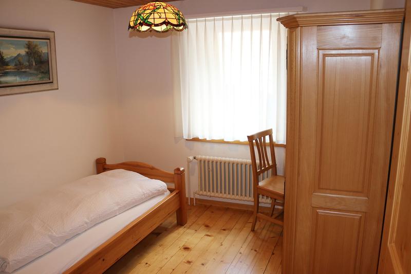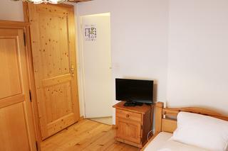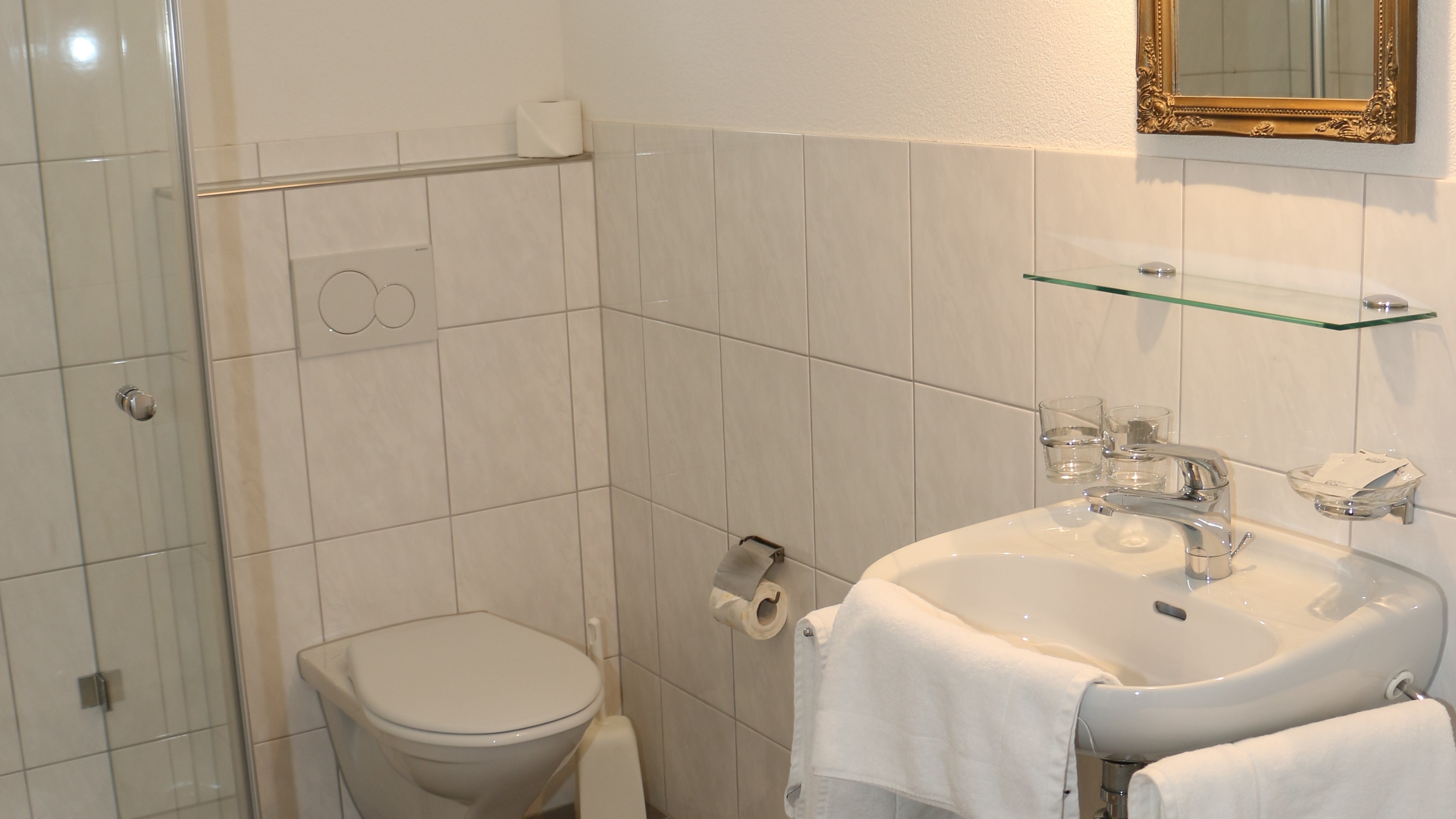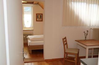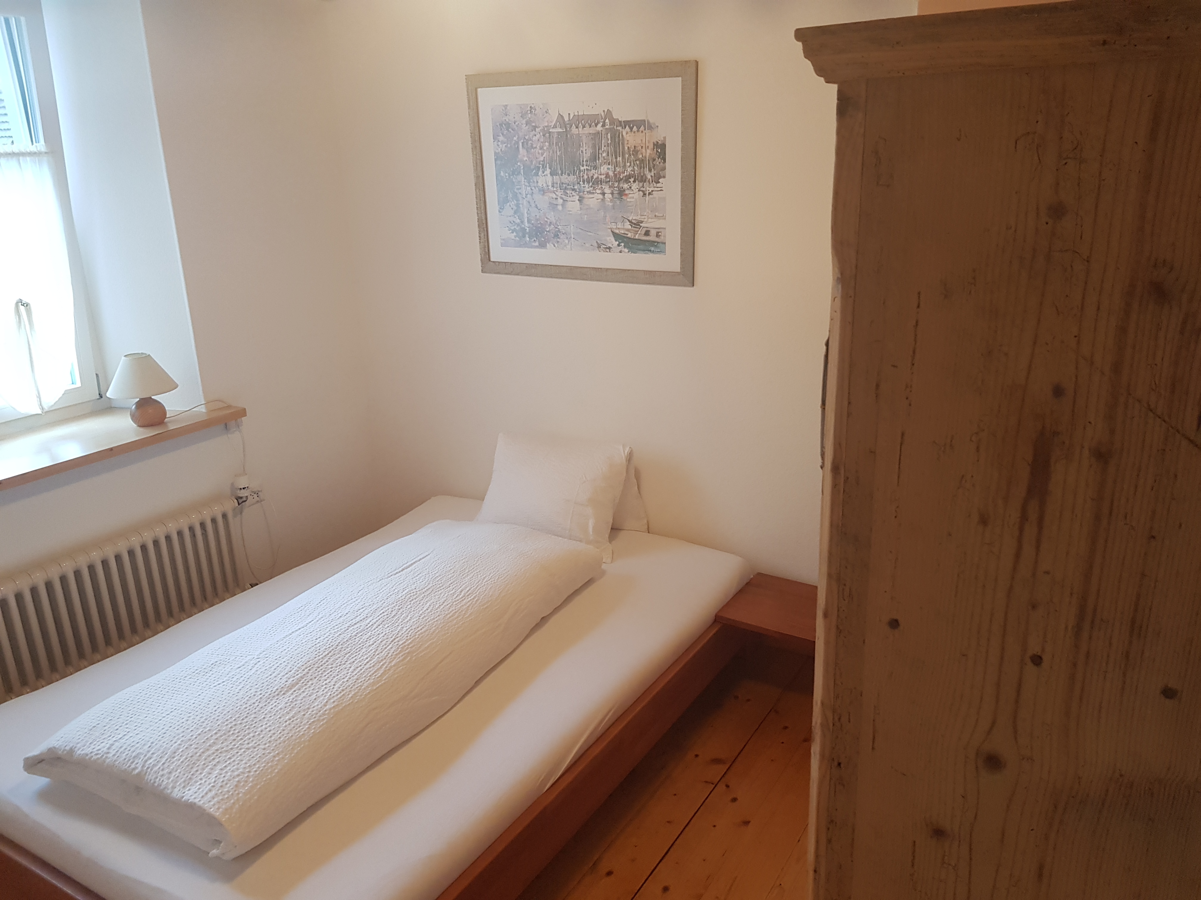 Geräumiges Einzelzimmer mit Französischem Bett (140 cm) und sehr schöner Aussicht auf den Pizol und ins Zentrum des Städchens. Das grosszügige Bad befindet sich im Zimmer.